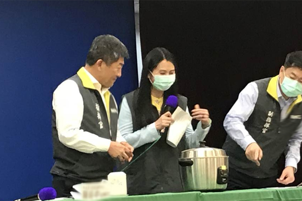 臺灣地區“流行疫情指揮中心”教島內民眾“蒸”口罩。(圖片來源:臺灣“中時電子報”)