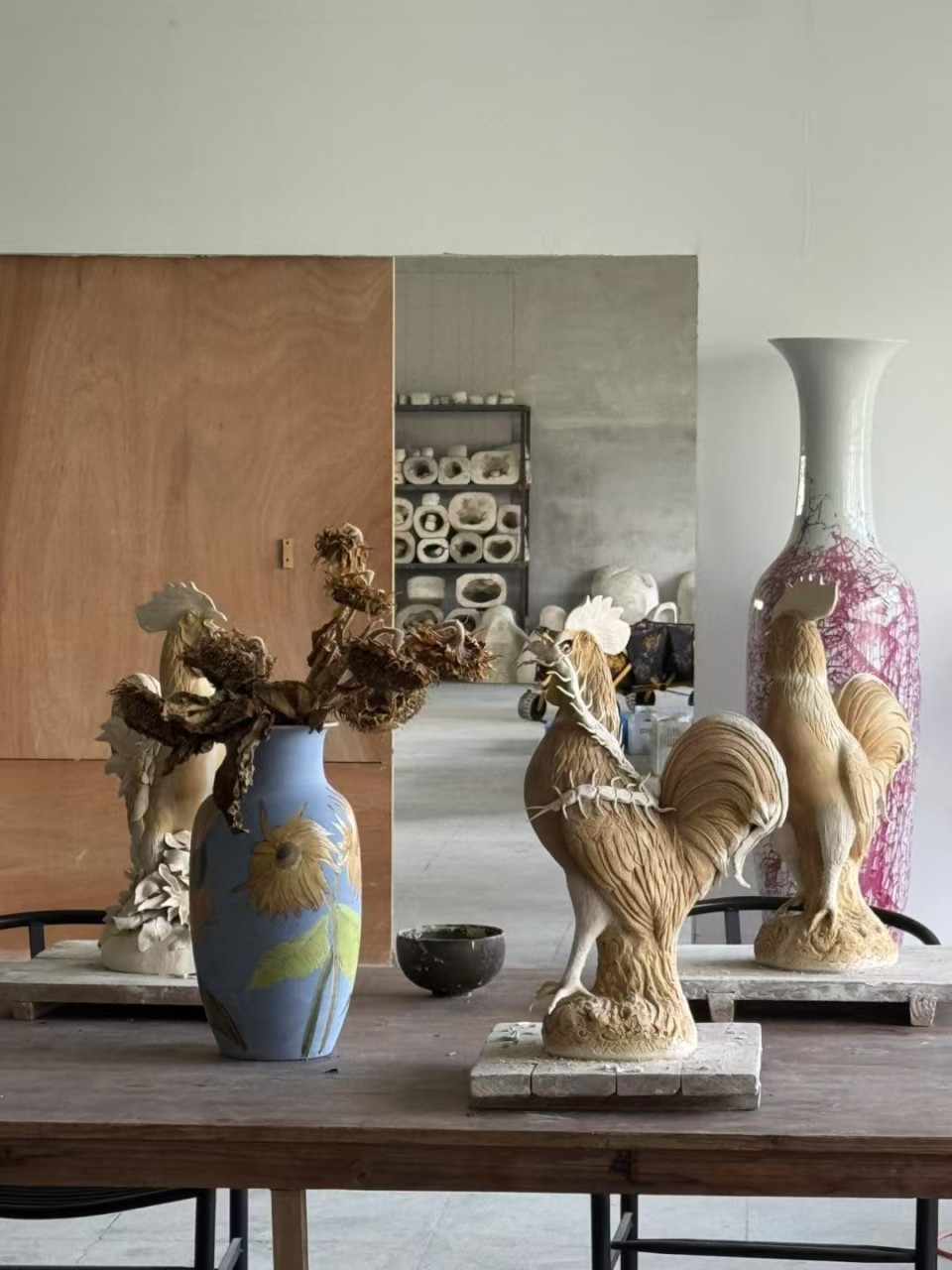 開彌的工作臺(tái)上,一件特別的公雞泥坯吸引了記者的目光。它背后,是一段關(guān)于合作與共鳴的溫暖故事。